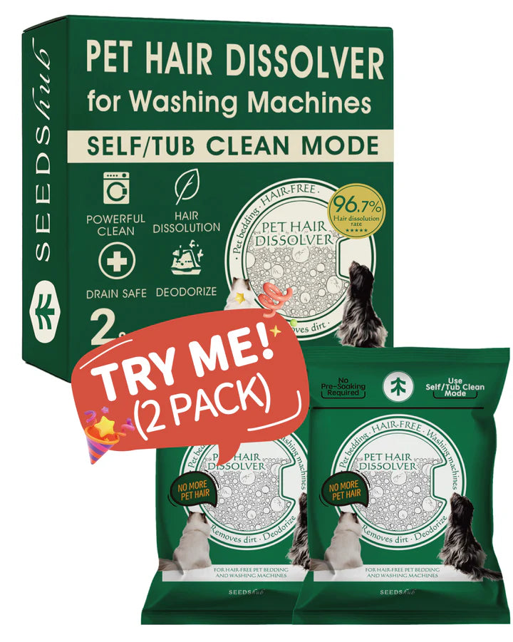 - Pet Hair Dissolver (2 Sachets): Single-use sachets that break down pet hair in laundry, preventing clogs and residue.